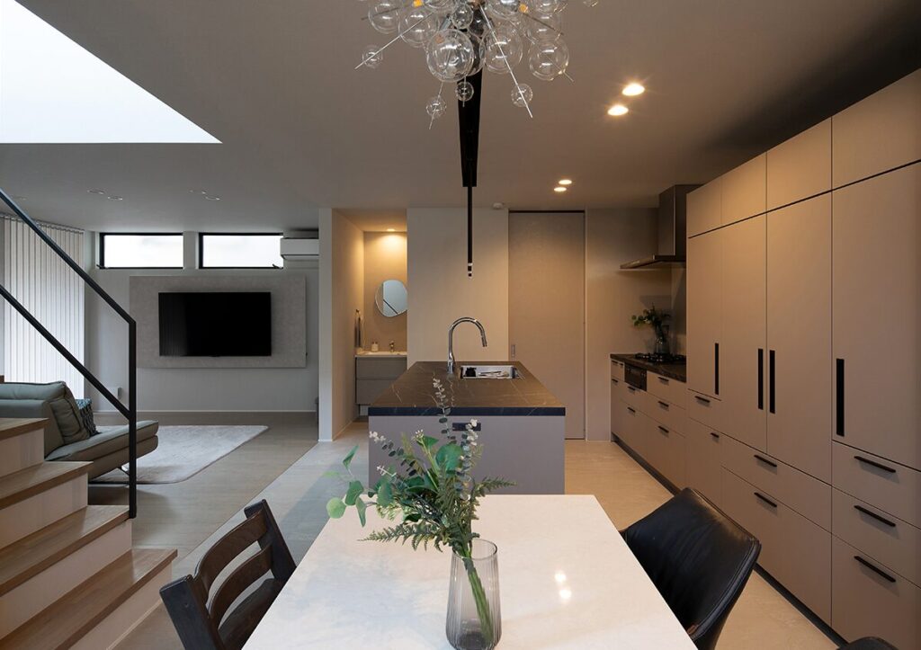 こだわりの照明が映えるダイニングキッチン